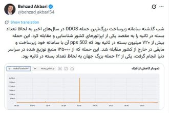 بهزاد اکبری، مدیرعامل شرکت ارتباطات زیرساخت امروز در صفحه شخصی خودش نوشت: «شب گذشته سامانه زیرساخت بزرگترین حمله DDOS در…