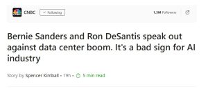 برنی سندرز، سناتور سوسیالیست دموکرات و ران دسنتیس، فرماندار راستگرا، تقریباً در هیچ موردی با یکدیگر تفاهم ندارند. با این حال، آنها امسال به عنوان منتقدان اصلیِ رونق مراکز داده در صنعت هوش مصنوعی، به یک دیدگاه مشترک دست یافتهاند.