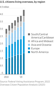 برآوردهای مربوط به تعداد امریکاییهای مقیم خارج از کشور متفاوت است، اما «برنامه فدرال کمک به رأیدهندگان» وابسته به وزارت دفاع، این رقم را در سال ۲۰۲۲ معادل ۴.۴ میلیون نفر تخمین زده که نسبت به سال ۲۰۱۰ افزایش ۴۲ درصدی را نشان میدهد.