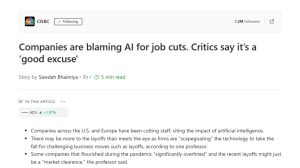 او اظهار می دارد که قبلاً ممکن بود استفاده از هوش مصنوعی با نوعی بدنامی همراه باشد، اما اکنون شرکت‌ها در حال قربانی کردن این فناوری هستند تا مسئولیت اقدامات دشوار تجاری مانند اخراج‌ها را به گردن آن بیندازند.