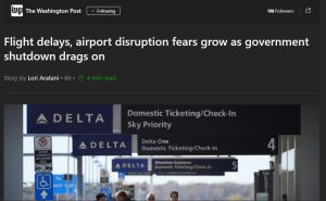 اکنون که تعطیلی دولت وارد دومین ماه خود می‌شود، دولت ترامپ با اشاره به مشکلات سیستم هوانوردی کشور در حال فشار آوردن به دموکرات‌ها برای بازگشایی مجدد دولت است.